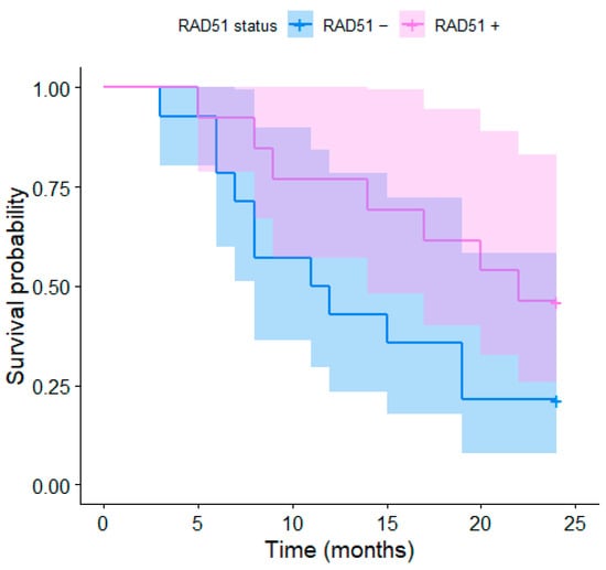 Kaplan–Meier curves of the 2-year survival for RD51+ and RAD51− patients.