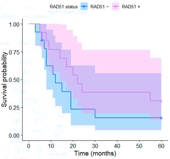 Kaplan–Meier curves of the 5-year survival for RD51+ and RAD51− patients.