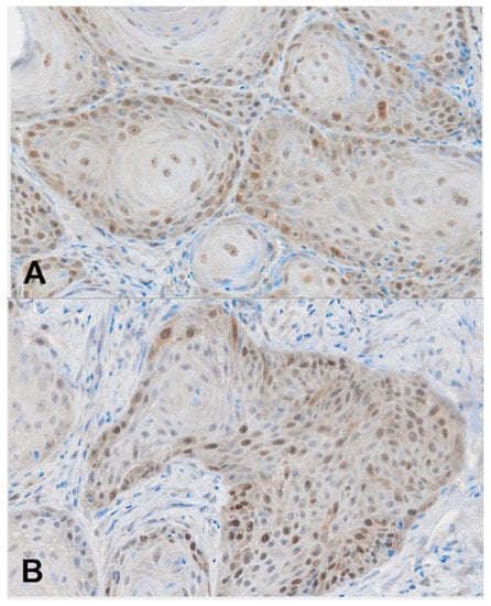 Patients with HPV-positive OCOCs are typically young people with higher socioeconomic status who are in good physical condition []. This might be one of the reasons why HPV-positive OCOCs are associated with better overall survival and longer progression-free survival compared to HPV-negative ones []. The former also show a better therapeutic response to radiotherapy (both as the sole treatment and in combination with concomitant chemotherapy) []. Due to the small number of positive tumors for HPV 66 in our study, it is not possible to determine whether this is a co-infection or a pathogen with oncogenic potential. Van Monsjou et al. investigated the presence of different types of HPV in oropharyngeal tumors. Of 45 samples, they found the presence of HPV66 in 1, but it did not show evidence of p16 overexpression, so it was probably not a factor in carcinogenesis [].