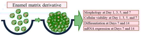 - Riksen, E.A.; Landin, M.A.; Reppe, S.; Nakamura, Y.; Lyngstadaas, S.P.; Reseland, J.E. Enamel matrix derivative promote primary human pulp cell differentiation and mineralization. Int. J. Mol. Sci. 2014, 15, 7731–7749. [Google Scholar] [CrossRef] [PubMed]