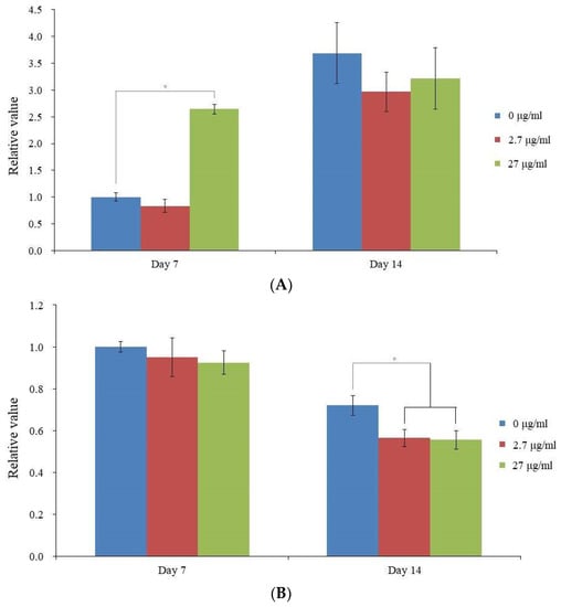 3.4. qPCR Analysis of RUNX2 and COL1A1