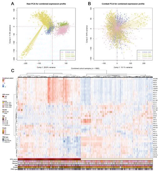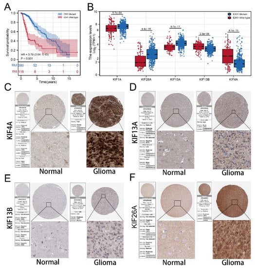 - Cho, S.Y.; Kim, S.; Kim, G.; Singh, P.; Kim, D.W. Integrative analysis of KIF4A, 9, 18A, and 23 and their clinical significance in low-grade glioma and glioblastoma. Sci. Rep. 2019, 9, 4599. [Google Scholar] [CrossRef]