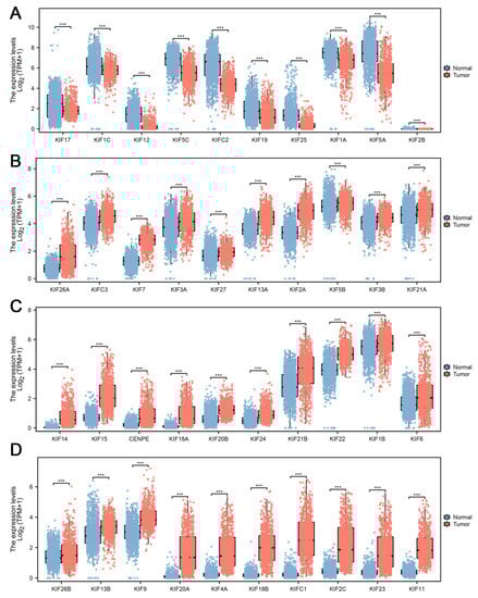 - Yang, Y.; Gao, L.; Weng, N.-N.; Li, J.-J.; Liu, J.L.; Zhou, Y.; Liao, R.; Xiong, Q.-L.; Xu, Y.-F.; Varela-Ramirez, A.; et al. Identification of Novel Molecular Therapeutic Targets and Their Potential Prognostic Biomarkers Among Kinesin Superfamily of Proteins in Pancreatic Ductal Adenocarcinoma. Front. Oncol. 2021, 11, 708900. [Google Scholar] [CrossRef] [PubMed]