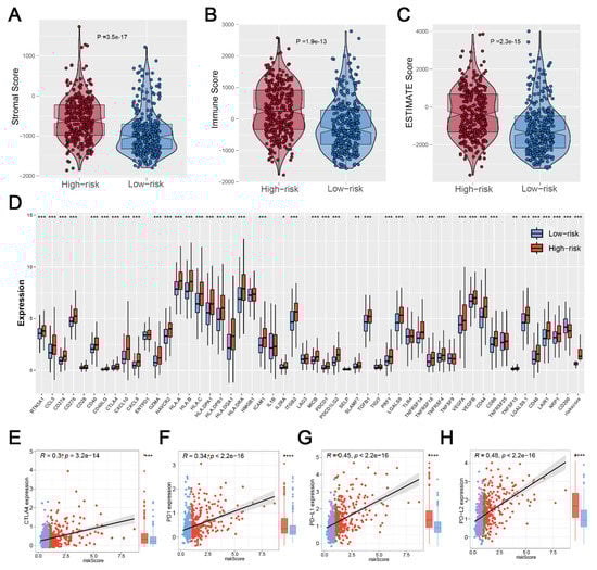 3.5. Significant Discrepancy of Immune Features between Two Risk Groups