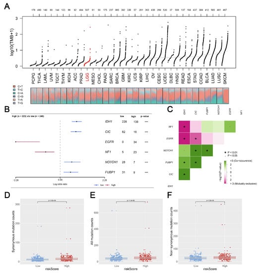 3.6. Mutation Status in Glioma Patients between Two Risk Groups