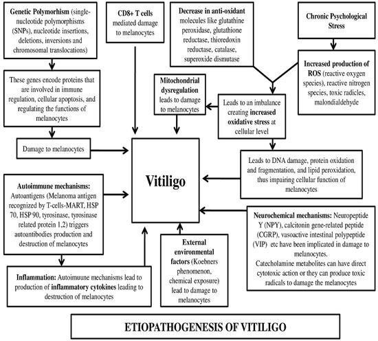 - Bergqvist, C.; Ezzedine, K. Vitiligo: A focus on pathogenesis and its therapeutic implications. J. Dermatol. 2021, 48, 252–270. [Google Scholar] [CrossRef]