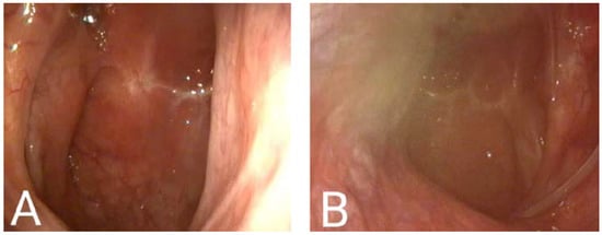 Videoendoscopic examination showing (A) right and (B) left permeable choana.