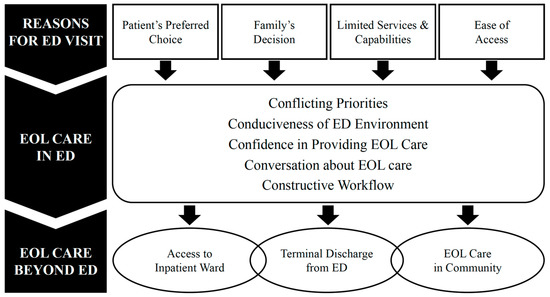 We identified three main themes with their respective subthemes that contextualized ED visits by patients requiring end-of-life care and their families (Figure 3). Each subtheme with their corresponding supportive quotes are presented as follows. Additional quotes are available as (Appendix B).