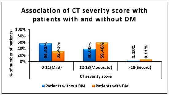| CT Severity Score | Patients without DM (n = 115) | Patients with DM (n = 37) | Total | p Value |