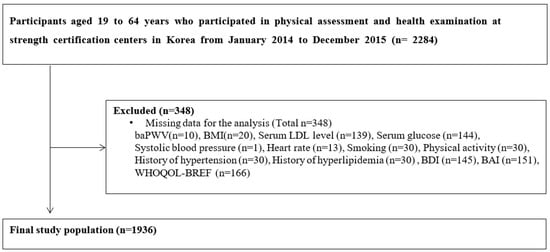 APA StyleYoo, T.-K., Lee, S., Hwang, S.-Y., Ahn, C., Park, S., & Lee, J.-Y. (2023). A Cross-Sectional Investigation of the Association between Arterial Stiffness and Depressive Symptoms, Anxiety Symptoms, and Quality of Life. Medicina, 59(3), 477. https://doi.org/10.3390/medicina59030477
