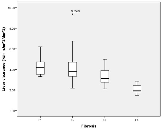 In general, liver clearance was negatively associated with the liver fibrosis stage—liver clearance decreased as the stage of liver fibrosis increased.