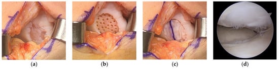The limitation of the marrow stimulation technique is that bone marrow stem cells and growth factors are released into the joint rather than remaining at an articular surface. Collagen gel or scaffold has been used to overcome this limitation by providing mechanical stability to form clots []. Cell-free type I collagen gels or scaffolds combined with marrow stimulation, such as multiple drilling, have shown good outcomes regarding the induction of hyaline-like cartilage [,,]. Autologous matrix-induced chondrogenesis (AMIC) uses a porcine collagen matrix to provide a biological scaffold.