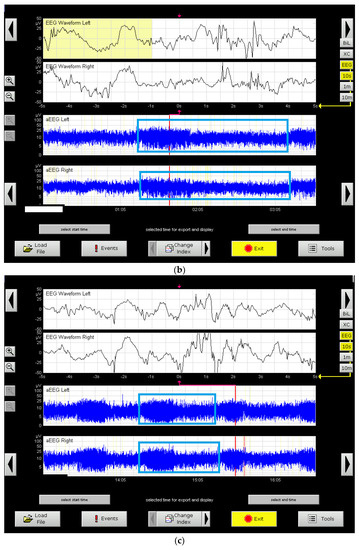 The left and right examples are shown on the aEEG tracings in Figure 5a-c.