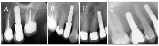 - Laird, B.S.; Hermsen, M.S.; Gound, T.G.; Al Salleeh, F.; Byarlay, M.R.; Vogt, M.; Marx, D.B. Incidence of endodontic implantitis and implant endodontitis occurring with single-tooth implants: A retrospective study. J. Endod. 2008, 34, 1316–1324. [Google Scholar] [CrossRef] [PubMed]