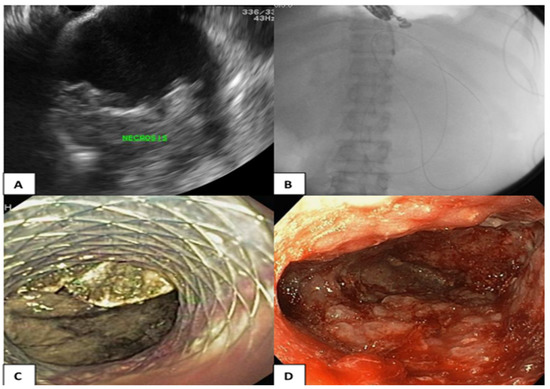 - Gluck, M.; Ross, A.; Irani, S.; Lin, O.; Hauptmann, E.; Siegal, J.; Fotoohi, M.; Crane, R.; Robinson, D.; Kozarek, R.A. Endoscopic and percutaneous drainage of symptomatic walled-off pancreatic necrosis reduced hospital stay and radiologic resources. Clin. Gastroenterol. Hepatol. 2010, 8, 1083–1088. [Google Scholar] [CrossRef]