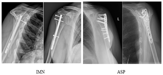 Despite the good results of the surgical treatment in both groups, the final results suggest that, compared to IMN, ASP may be a better choice in the treatment of proximal humerus fractures during the COVID-19 pandemic.