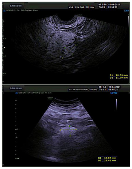 - Mascilini, F.; Quagliozzi, L.; Moro, F.; Moruzzi, M.C.; Gallotta, V.; Alletti, S.G.; Scambia, G.; Testa, A.C.; Fagotti, A. Role of Intraoperative Ultrasound to Extend the Application of Minimally Invasive Surgery for Treatment of Recurrent Gynecologic Cancer. J. Minim Invasive Gynecol. 2018, 25, 848–854. [Google Scholar] [CrossRef] [PubMed]