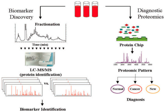 MS-based methods for biomarker discovery (left side) and pattern-based diagnostic proteomics (right side). (Reprinted/adapted with permission from Ref [38]. Copyright year 2005).