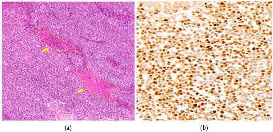 - Tabata, K.; Tanaka, T.; Hayashi, T.; Hori, T.; Nunomura, S.; Yonezawa, S.; Fukuoka, J. Ki-67 is a strong prognostic marker of non-small cell lung cancer when tissue heterogeneity is considered. BMC Clin. Pathol. 2014, 14, 23. [Google Scholar] [CrossRef] [PubMed]