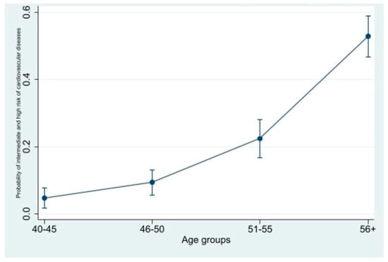 Predictive probabilities of intermediate/high cardiovascular risk among different age groups.