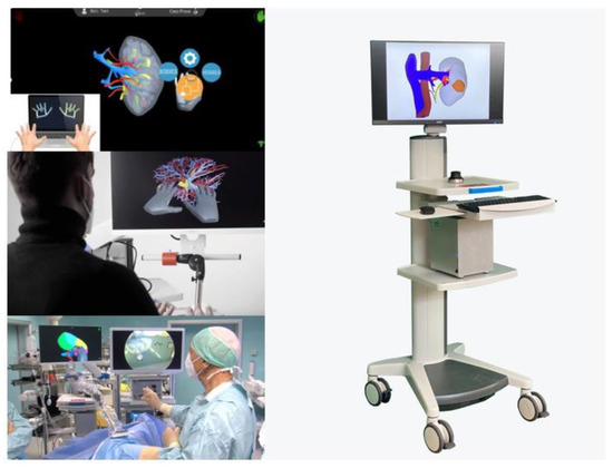 However, today, pure laparoscopy still represents the most common surgical approach in urology, meeting continuous attempts of renewal and technological updating with the introduction of new laparoscopic instruments and new cameras, aiming to obtain ever more detailed images of the intraoperative field [7,8,9]. However, the application of real-time use of 3D models during laparoscopic surgery remains anecdotal. Some pioneering experiences have been published regarding the use of 3D models also in this setting [10], but an extensive adoption and application of this technology has been limited due to the difficult interaction between the scrubbed surgeons and the surgical navigation tools. With the aim to make the 3D technology usable both for robotics and laparoscopy, thanks to the collaboration with Medics3D’s (https://www.medics3d.com, accessed on 1 March 2022) bioengineers we have developed a specific platform for 3D models management and navigation, named ICON3DTM (Intraoperative Cognitive Navigation), which ensures online cloud access to the 3D models and, thanks to a dedicated rack, allows surgeons to exploit independently the virtual reconstructions from preoperative planning to intraoperative cognitive navigation or augmented reality surgical procedures. The aim of this study was to evaluate the surgeons’ perceptions and usability of ICON3DTM platform for robotic and laparoscopic urological surgical procedures.