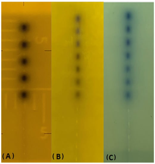 (A–C). Appearances of the irradiated films. The first film (A) was irradiated in a conventional simulator. The second and third films (B,C) were irradiated on the LINAC OBI.