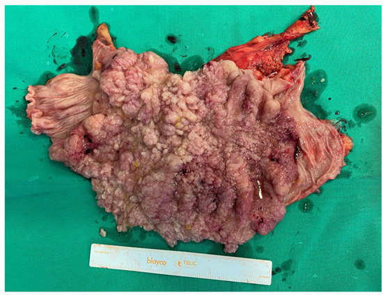 - Targarona, E.M.; Hernandez, P.M.; Balague, C.; Martinez, C.; Hernández, J.; Pulido, D.; Berindoague, R.; Trias, M. McKittrick-Wheelock Syndrome Treated by Laparoscopy: Report of 3 Cases. Surg. Laparosc. Endosc. Percutaneous Tech. 2008, 18, 536–538. [Google Scholar] [CrossRef]