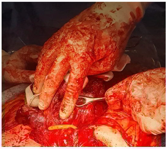 - Envain, F.; Garabedian, C. Tourniquet: A simple intervention for hemorrhage during cesarean for placenta accreta. Eur. J. Obstet. Gynecol. Reprod. Biol. 2020, 249, 110–112. [Google Scholar] [CrossRef] [PubMed]