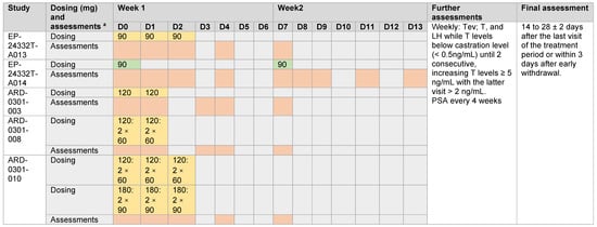 - MacLean, C.M.; Godsafe, Z.; Soto-Forte, P.; Larsen, F. Pharmacokinetic, Safety, and Pharmacodynamic Properties of Teverelix Trifluoroacetate, a Novel Gonadotropin-Releasing Hormone Antagonist, in Healthy Adult Subjects. Clin. Pharmacol. Drug. Dev. 2022, 11, 257–269. [Google Scholar] [CrossRef] [PubMed]