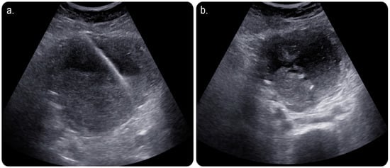Sonographic ultrasound plays a pivotal role in the identification and diagnosis of endometrial fluid collection. However, further characterisation can be obtained using cross-sectional imaging techniques (i.e., computed tomography (CT) and magnetic resonance imaging (MRI)), especially for gynaecological diseases that might be associated with oncological aetiologies [,].