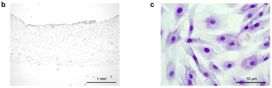 Dermal replacement materials cover skin defects in clinical routine [] as they serve as a regenerative template for fibroblast and epithelial cells. These templates, better known as scaffolds in tissue engineering approaches, are gaining more attention [,,]. Depending on pore size, collagen scaffolds offer an ideal substrate for cell growth [,]. The application of therapeutic cells and their growth-promoting secretions enable researchers to bio-activate scaffolds and improve the regenerative potential [,,,,,,].