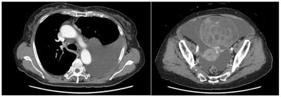 A computed tomography (CT) scan performed for close examination of abdominal distention revealed pleural and ascites effusions, which led to suspicion of a neoplastic lesion arising from the ovaries (Figure 1).