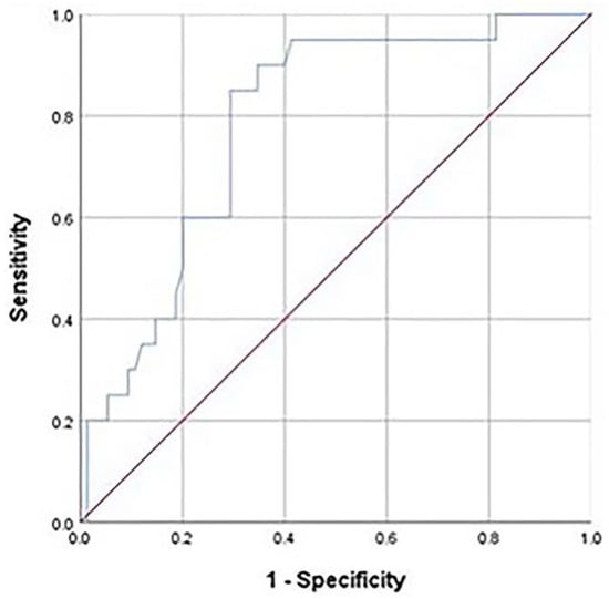 Receiver operating characteristic curve of the lateral bowing angle. The area under the curve, cut-off value, Youden’s index, sensitivity, and specificity of the lateral bowing angle were 0.786 (0.684–0.888), 9.30, 0.557, 0.850, and 0.707, respectively (p < 0.001).