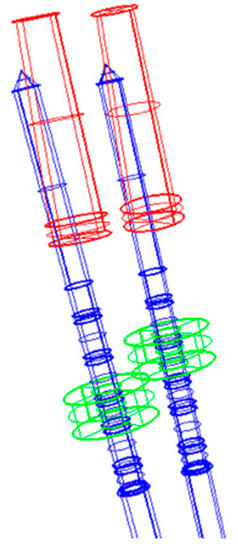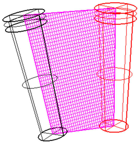 The implant volume present in the post-surgical CT was segmented and reconstructed. The same reconstruction procedure was also used for the template sleeves and surgical drills. In this way, it was possible to virtually position the implant drills along the central axis of the sleeves, obtaining the exact position of the planned implants. After placing the real implants in their real positions, three-dimensional deviations could be calculated (Figure 3) using a dedicated software (Rhinoceros® 4.0, McNeel Europe, Barcelona, Spain).
