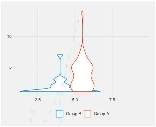 In comparing the values for the duration of the postoperative pain, there was a statistically significant difference between the groups. The mean duration of postoperative pain in group A (electrocautery group) was 4.62 days (1–14 days), while in group B it was 2.13 days (with variations between 1 and 7 days). The difference was statistically significant (p < 0.001) (Figure 1).