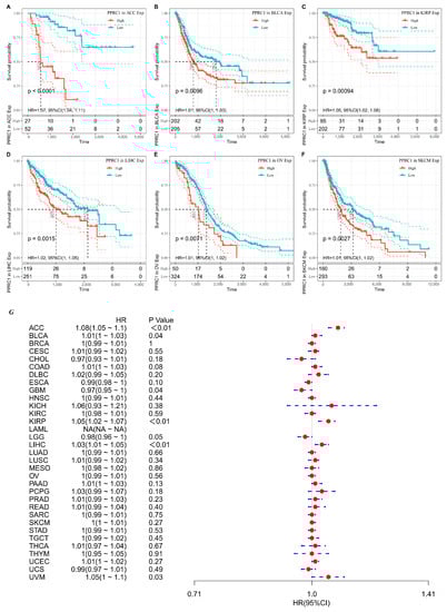 3.2. Prognostic Role of PPRC1 in Pan-Cancer