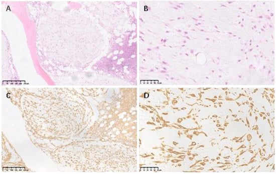 - Serra, M.; Morini, M.C.; Scotlandi, K.; Fisher, L.W.; Zini, N.; Colombo, M.P.; Campanacci, M.; Maraldi, N.M.; Olivari, S.; Baldini, N. Evaluation of osteonectin as a diagnostic marker of osteogenic bone tumors. Hum. Pathol. 1992, 23, 1326–1331. [Google Scholar] [CrossRef] [PubMed]