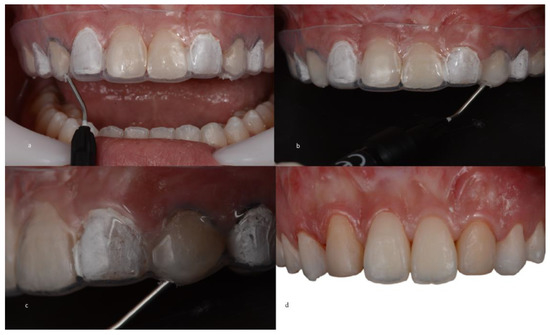 - Brinkmann, J.C.-B.; Albanchez-González, M.I.; Peña, D.M.L.; Gil, I.G.; García, M.J.S.; Rico, J. Improvement of aesthetics in a patient with tetracycline stains using the injectable composite resin technique: Case report with 24-month follow-up. Br. Dent. J. 2020, 229, 774–778. [Google Scholar] [CrossRef]