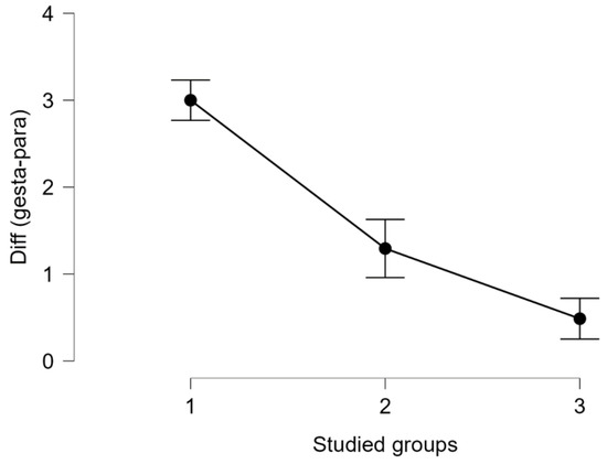17] determined that the mean age of the enrolled pregnant woman diagnosed with thrombophilia who used LWMH during pregnancy was 33.9 years old, with an SD ± 4.9 years. Similar to these findings, our patients have approximately the same age range (group 1—33 years old, with an IQR ± 5 years, group 2—30 years old, with an IQR ± 7 years, and group 3—30.5 years old, with an IQR ± 7 years). The risk of maternal and fetal difficulties during pregnancy, such as stillbirth, small-for-gestational-age births, preterm birth, preeclampsia, and maternal death, increases in women as age enhances, presenting as hazard gain as age increases [