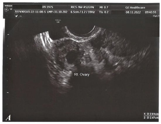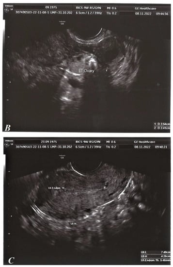 Regarding local GYN examination, as well as standard transvaginal ultrasound (TVUS), no clinical pathological signs were detected. (Figure 2).
