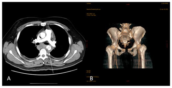 Genitourinary injuries account for about 10 percent of cases of abdominal trauma []. While trauma patients may present with multi-organ injuries that include the scrotum, physicians typically begin their assessment by evaluating vital organs. Urethral injuries may be identified early due to the urgent need for a Foley catheter to measure urine output, and urologists would be consulted if there is blood at the meatus or difficulty inserting a urethral catheter. In their rush to diagnose and treat major trauma, physicians may overlook a scrotal examination if there are no obvious abnormalities in the external genitalia. At times, cardiopulmonary resuscitation is even needed in hemodynamically unstable patients, and dislocated testes are often found either by medical personnel or the patient after initial management. At the first presentation, an inguinal mass with an empty scrotum may be noted. However, the condition may be asymptomatic, and cases have been reported up to 15 years after the initial injury []. Diagnostic tools include ultrasound and abdominal CT. Ultrasound can be used to perform the preliminary diagnosis of ectopic testes and confirm the testes’ integrity and current blood flow. Abdominal CT is the most precise modality available, and it can provide details of the location of the testes, associated injuries such as ruptures, and the relationship with adjacent anatomy. However, initially, the testes are often neglected due to the non-fatal nature of the corresponding injury and a lack of awareness of the dislocation, even when CT scans reveal dislocated testes in patients with pelvic trauma. In our case, a urologist was initially consulted for Foley catheter insertion; however, the condition in question was not identified, and orchidopexy was subsequently postponed. As a result, we strongly recommend performing a scrotal examination for every patient who has experienced pelvic trauma, especially a straddle collision. This simple and fast examination takes only a few seconds and helps to quickly identify the dislocation of the testes.