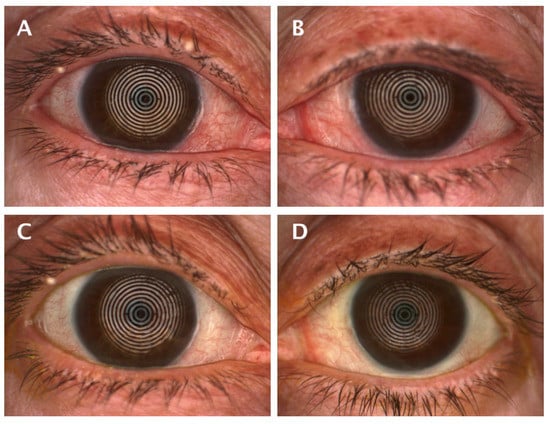 To analyze the ocular surface of the inflammation, the degree of ocular redness was measured with photographic capture and subsequent automatic computer analysis using the so-called Oculus Index, with a Keratograph 5M device (Oculus®, Wetzlar, Germany). This system automatically generates a bulbar redness score, between 0.0 and 4.0, based on the area percentage ratio between the vessels and the rest of the analyzed area [,,,].