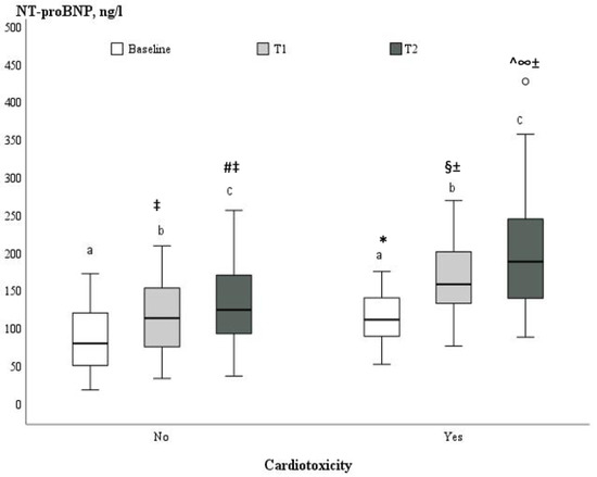 - Gimeno, E.; Gomez, M. NT-proBNP: A cardiac biomarker to assess prognosis in non-Hodgkin lymphoma. Leuk. Res. 2011, 35, 715–720. [Google Scholar] [CrossRef]