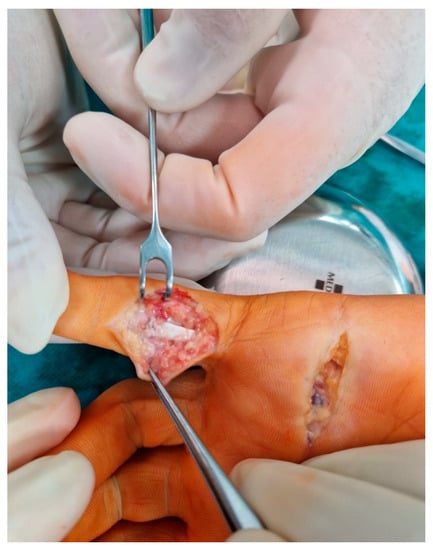 - Corain, M.; Lando, M.; Pantaleoni, F.; Pozza, P.; Giardini, M.; Adani, R. Surgical Treatment of Camptodactyly with Malek Cutaneous Approach and Stepwise Release: A Retrospective Multi-centre Study. J. Hand Surg. Asian Pac. Vol. 2022, 27, 233–241. [Google Scholar] [CrossRef] [PubMed]