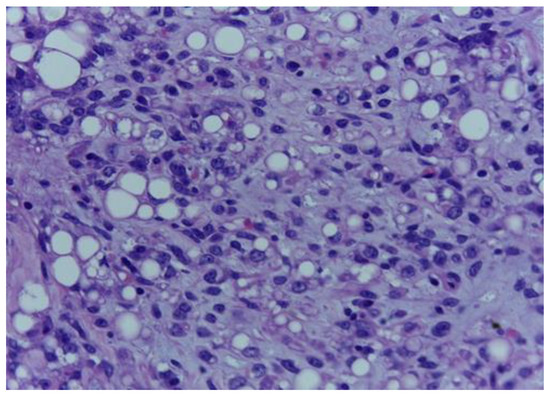 - 1Mariño-Enríquez, A.; Hornick, J.L.; Dal Cin, P.; Cibas, E.S.; Qian, X. Dedifferentiated liposarcoma and pleomorphic liposarcoma: A comparative study of cytomorphology and MDM2/CDK4 expression on fine-needle aspiration. Cancer Cytopathol. 2014, 122, 128–137. [Google Scholar] [CrossRef]