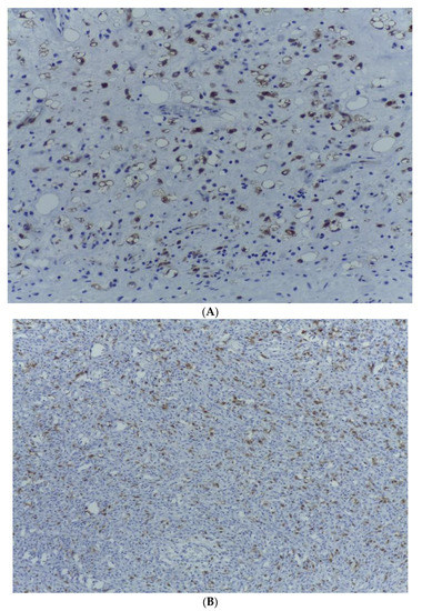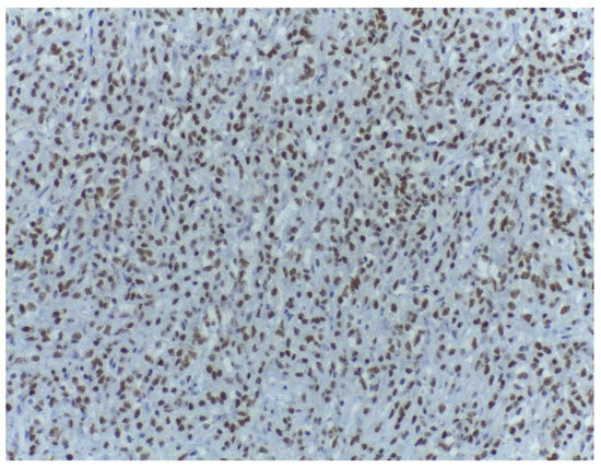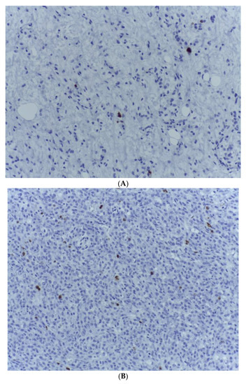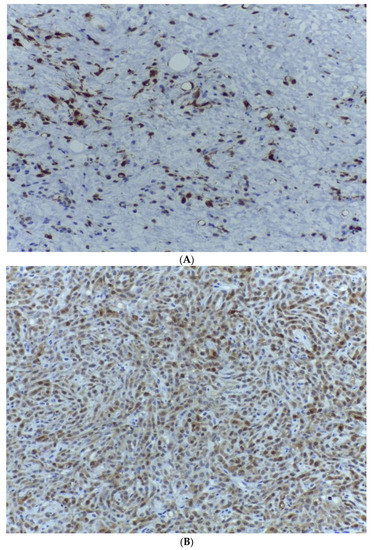 - Kobayashi, A.; Sakuma, T.; Fujimoto, M.; Jimbo, N.; Hirose, T. Diagnostic Utility and Limitations of Immunohistochemistry of p16, CDK4, and MDM2 and Automated Dual-color In Situ Hybridization of MDM2 for the Diagnosis of Challenging Cases of Dedifferentiated Liposarcoma. Appl. Immunohistochem. Mol. Morphol. 2019, 27, 758–763. [Google Scholar] [CrossRef]