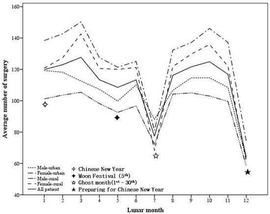 16]. All of the above findings show that cultural beliefs play an important role and influence medical decision making, especially when it is not emergent and people can “choose the time.” In addition, in Taiwan, family reunions are a crucial cultural practice during Chinese New Year. This celebration is an important event for people to gather with their families, eat traditional foods, and participate in cultural activities. Consequently, many healthcare providers take time off to celebrate this holiday with their families. This leads to reduced staffing levels and longer waiting times for patients seeking medical care, including surgery. As a result, the number of surgeries performed during the Chinese New Year period may be influenced by this cultural practice. Patients may choose to delay their surgery until after the holiday season to avoid longer waiting times or missing traditional activities.