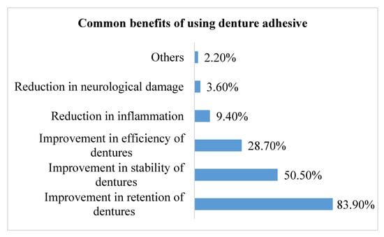 Distribution of participants’ responses about common benefits of using denture adhesive (n = 279).
