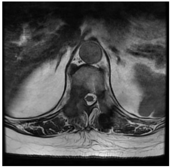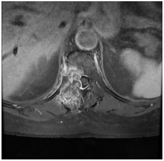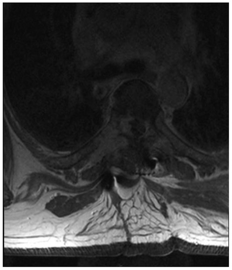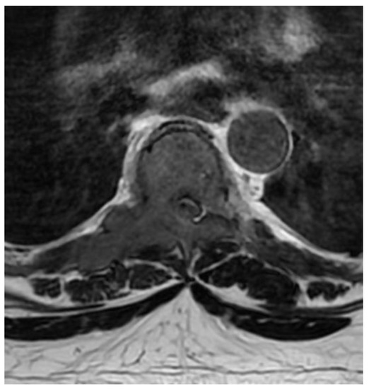 Preoperative T1 contrast-enhanced axial MRI Th6.