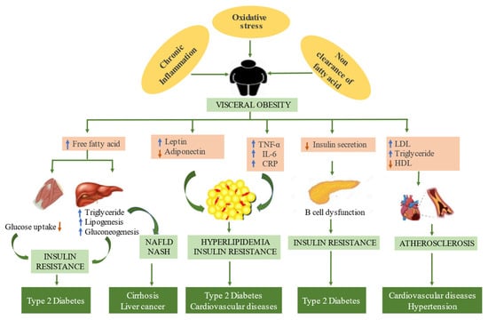 1.3. Several Hypothesized Pathways Underlie the Pathogenesis of Metabolic Syndromes Such as Oxidative Stress, Chronic Inflammation, and Insulin Resistance with Fatty Acid Flux [14,15]